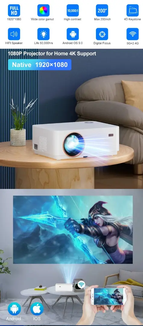 D5 4.45"LCD 300 ANSI Bluetooth Home Theatre Projector