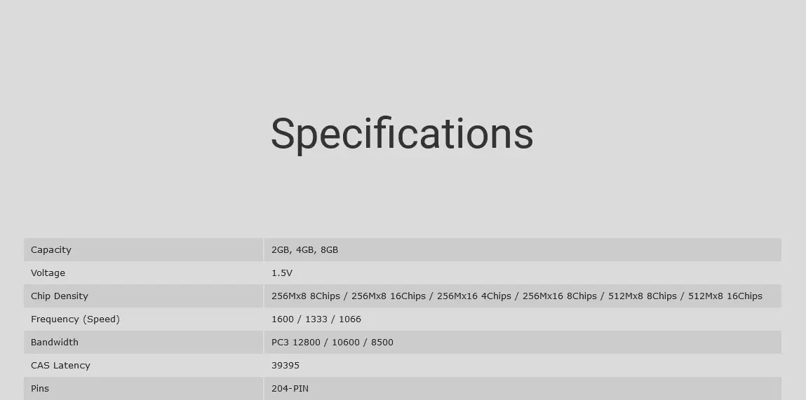 1600MHz (PC3 12800) 204-pin CL11 SODIMM for laptop memory