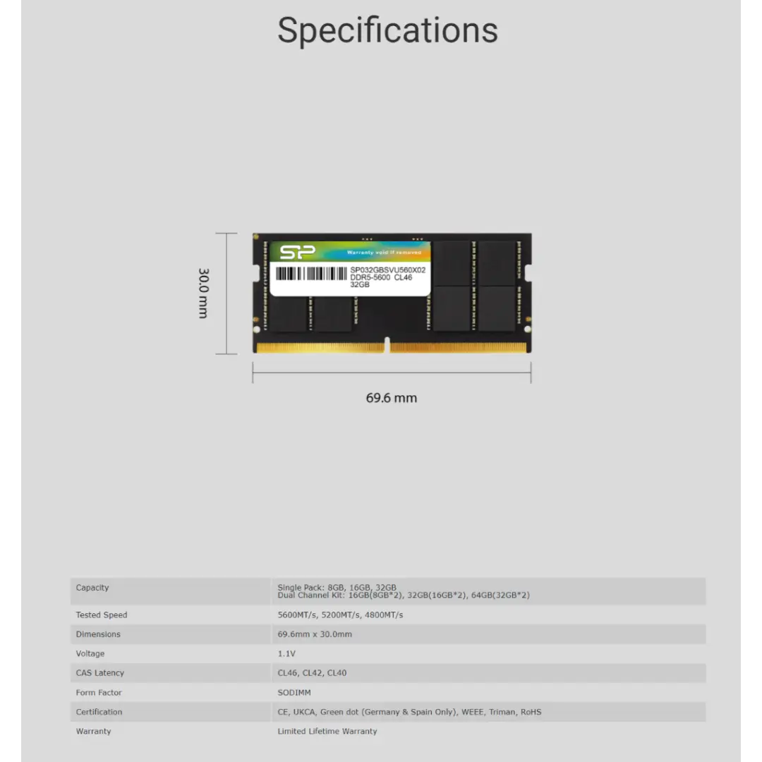 Silicon Power DDR5 4800MHz 32GB 1.1V Laptop Unbuffered DIMM