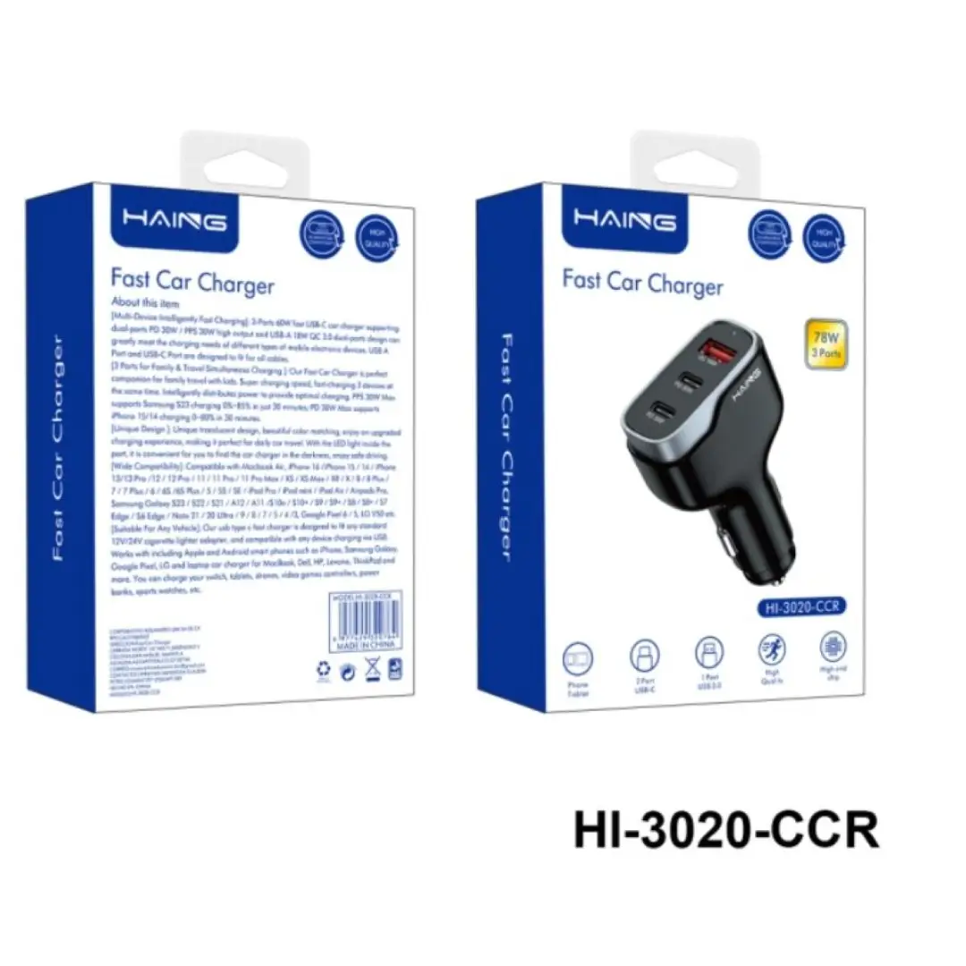 HAING Fast Car Charger 3 Ports 78W