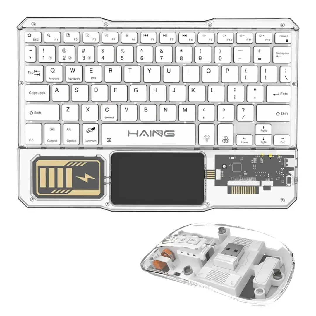 This Bluetooth keyboard and mouse adopts the design of high-definition transparent upper cover and metal roller, which brings modern and exquisite appearance, lifelike and transparent, stunning one touch, and enhances aesthetic feeling and user experience.