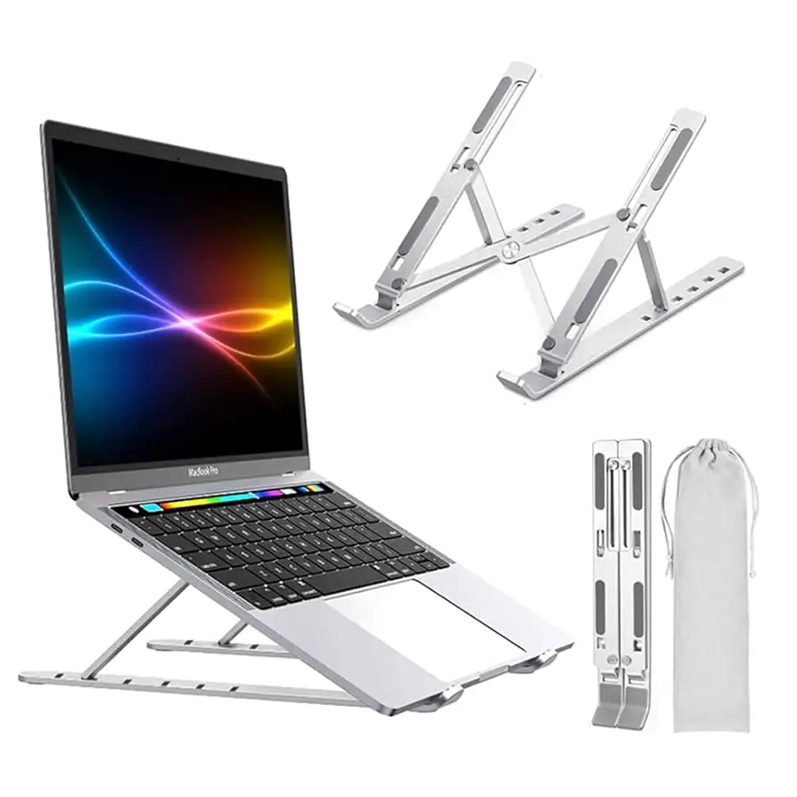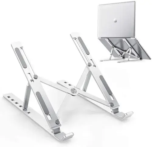 Aluminum Alloy Laptop Stand: Made of premium aluminum alloy, it has beautiful polished rounded corners. Triangle structure base design and "W" double lifting structure design make it very stable. It is capable of supporting up to 89 lbs (40 kg), and can easily carry every laptop/Macbook/Notebook etc. Equipped with a full silicone mat on top and multiple non-slip foot pads, it is useful to hold the laptop in place and further protect the device from any scratches or slips.