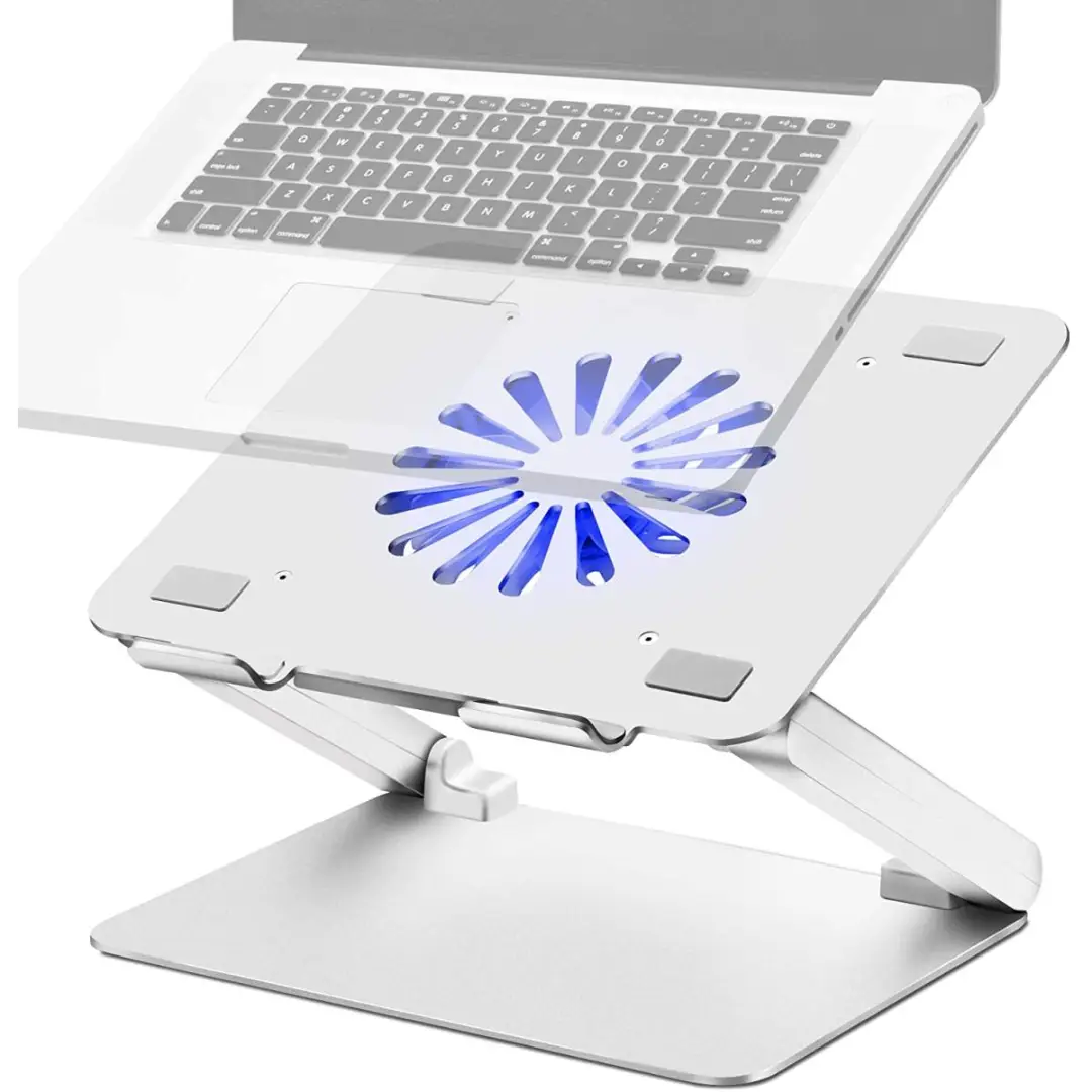 Cooling Better:The office computer stand is totally made of thickened Aluminum alloy, it can absorb and discharge heat easily. It also has holes and a cooling FAN on the surface which can cool down your laptop BETTER.
