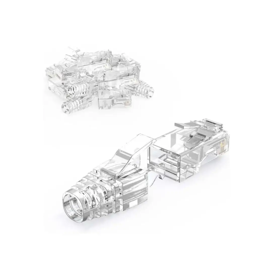 50 PCS RJ45 connectors for unshielded twisted pair solid or stranded cable,supports 24 to 26 AWG round or flat network cable.