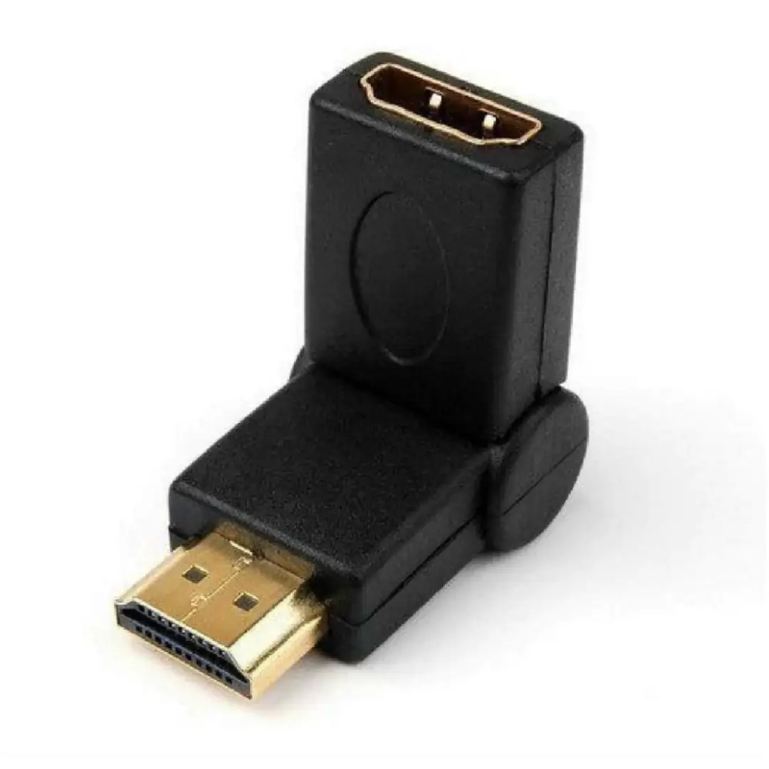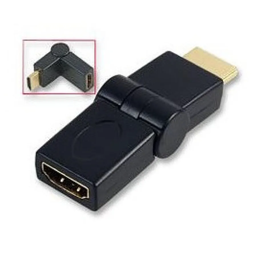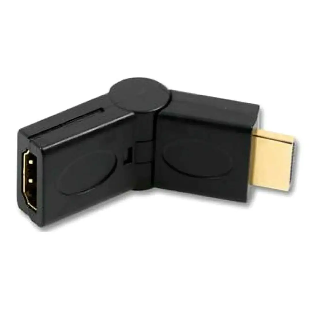 This adapter swivels from 90 to 270 degrees (180 degrees in total) when in any HDMI input. Commonly used to allow HDMI cables to be plugged in easily where you may have otherwise been restricted.