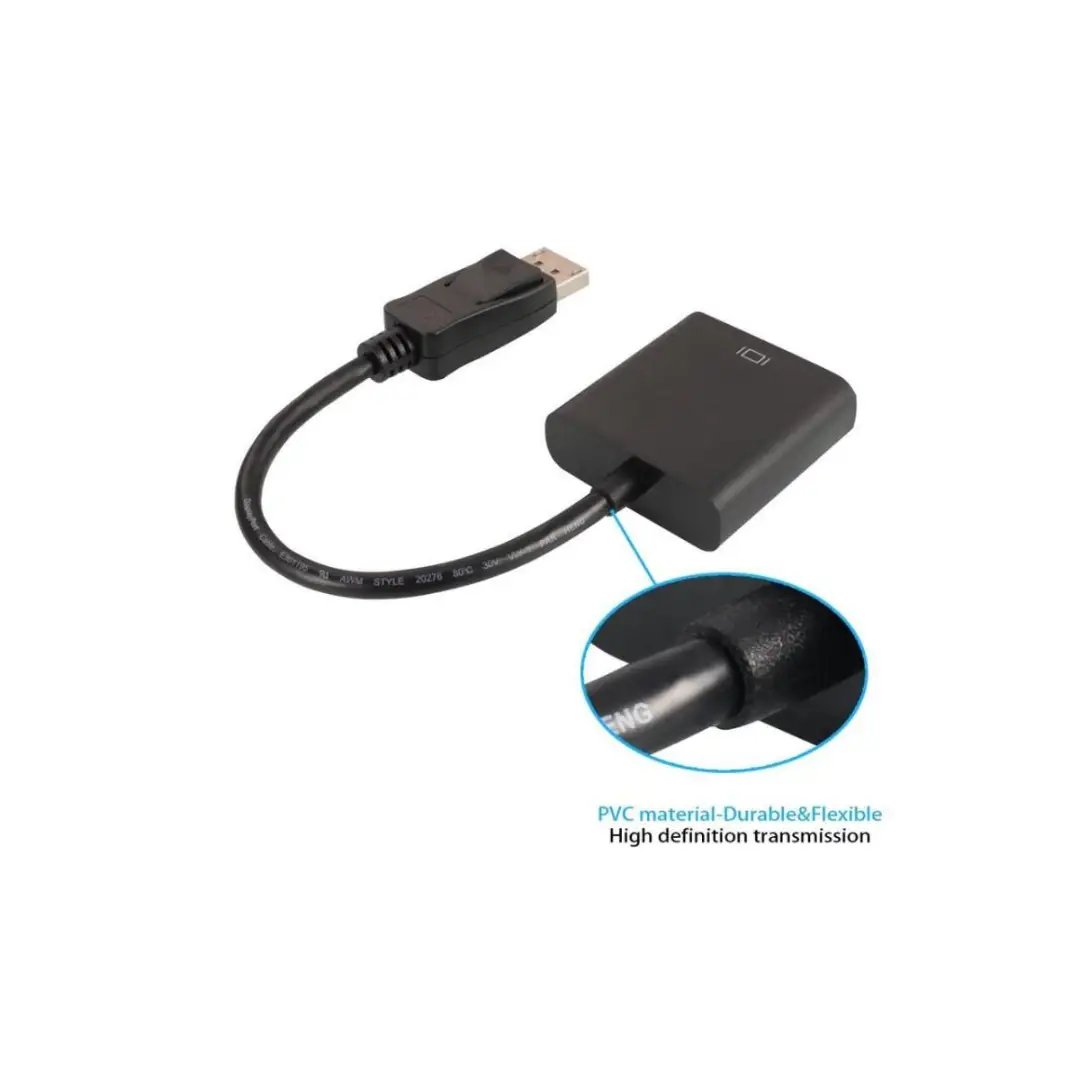 The DisplayPort male to VGA female converter supports video resolutions up to 1920x1080@60Hz (1080p Full HD) / 1920x1200; Gold plated DP connector resists corrosion and abrasion and improves signal transmission performance; Molded strain relief increases cable durability