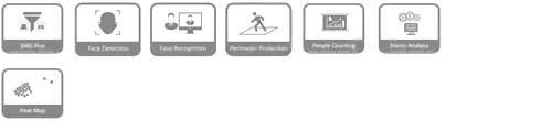AI by Camera supports face detection and recognition, perimeter protection, SMD Plus, people counting, stereo analysis and heat map.