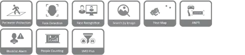AI by recorder: 2-channel face detection and recognition, 4-channel perimeter protection, and 8-channel SMD Plus.