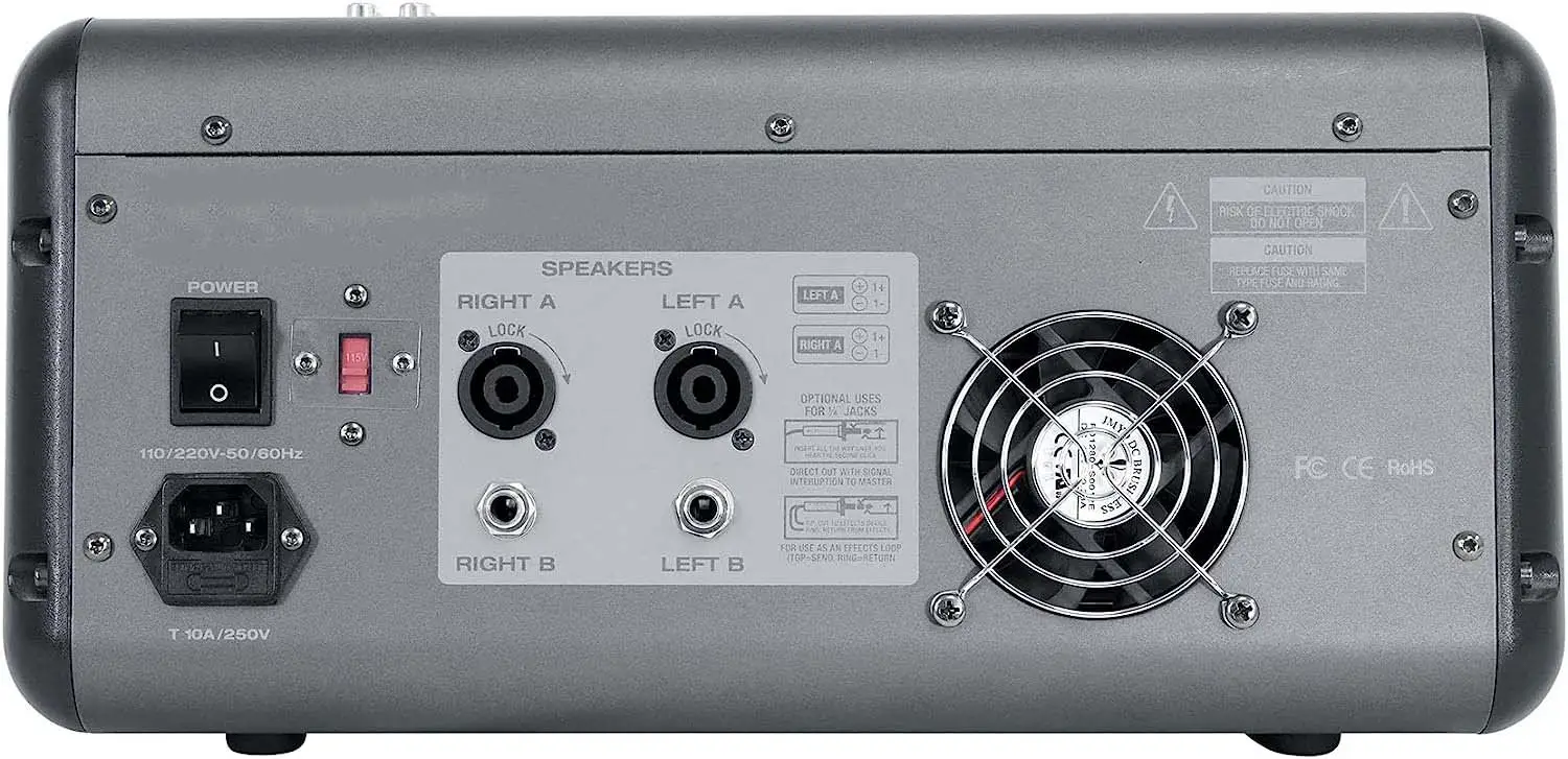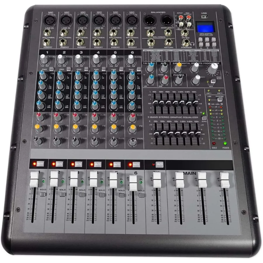 8 Channel mixer section: 6 mono channels, 1 stereo channel