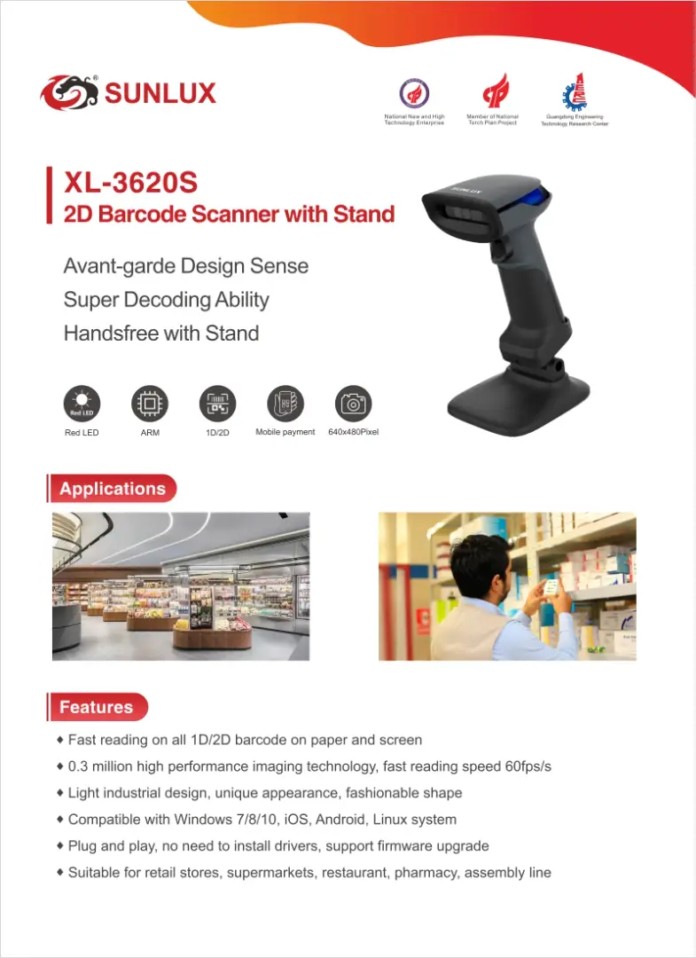 SUNLUX 2D Desktop Barcode Scanner