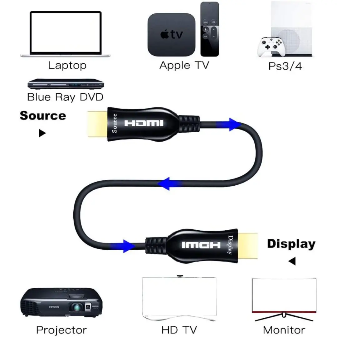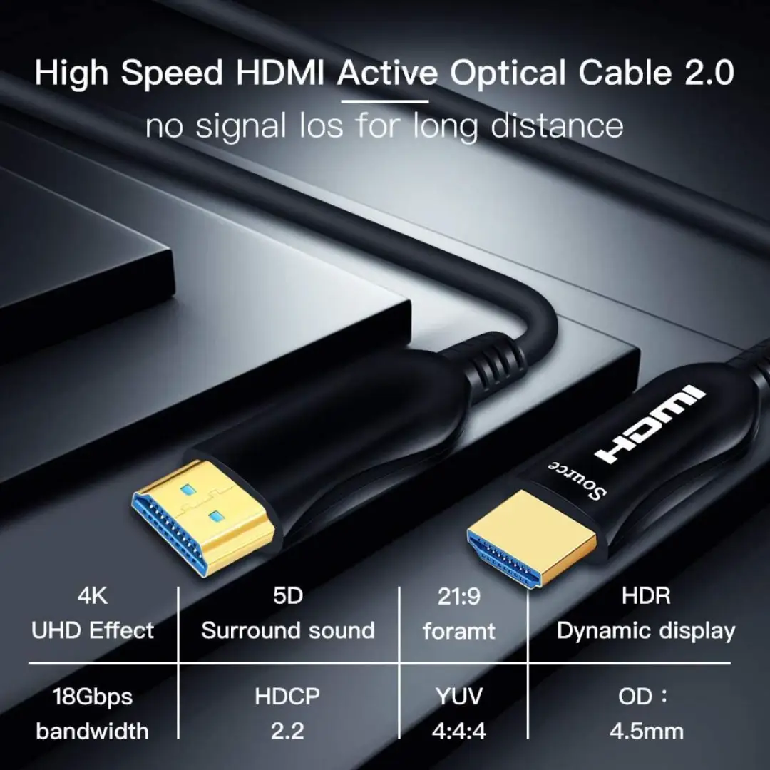 Copper HDMI cables can't achieve 18Gbps of bandwidth beyond 50 feet. In contrast Fiber Optic HDMI cables can maintain 18Gbps of bandwidth from.1 foot to 300 feet