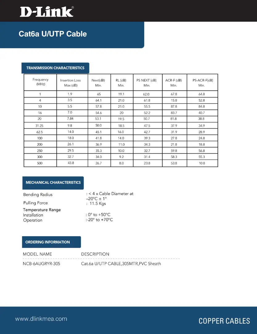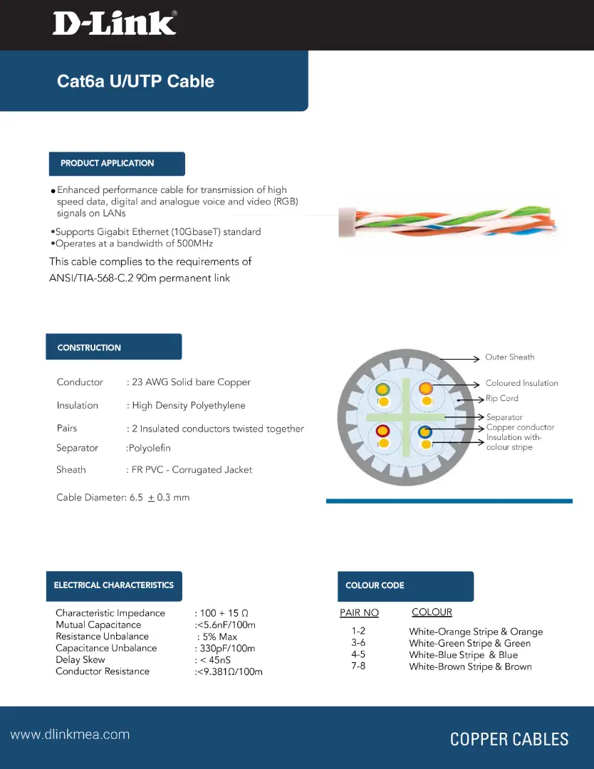Computer Masters - D-Link Cat6A 10G UTP 23AWG PVC Solid Cable 305m Roll