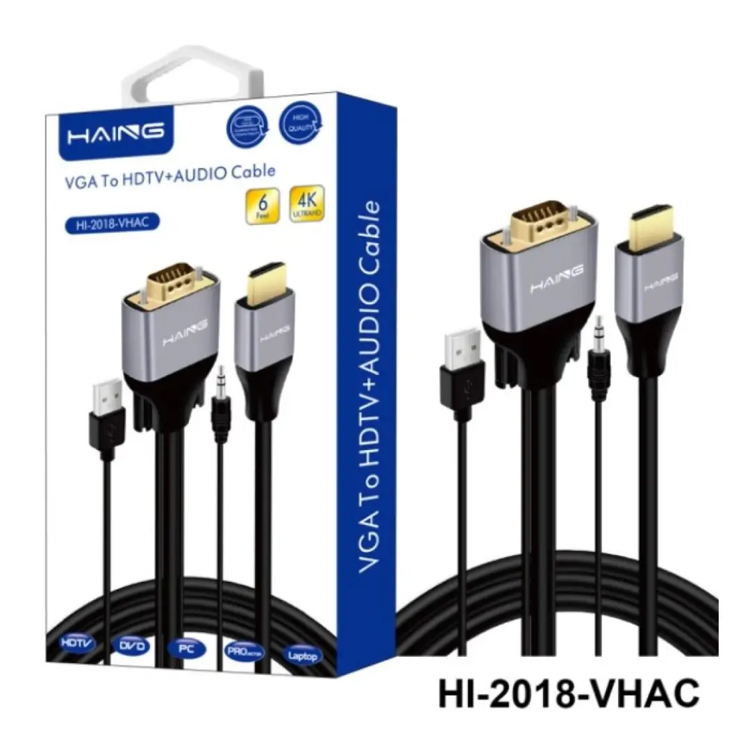 Convenient Connection:6FT/1.8M VGA to HDMI cable connects VGA-output devices (PC, laptop, desktop) to HDTVs, monitors, projectors, and display screens.