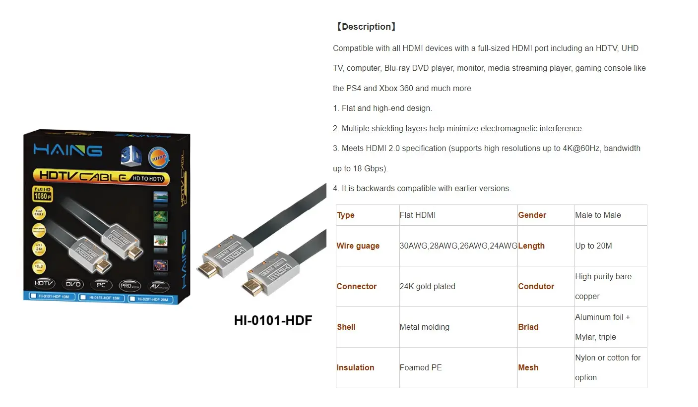 Meets HDMI 2.0 specification (supports high resolutions up to 4K@60Hz, bandwidth up to 18 Gbps).