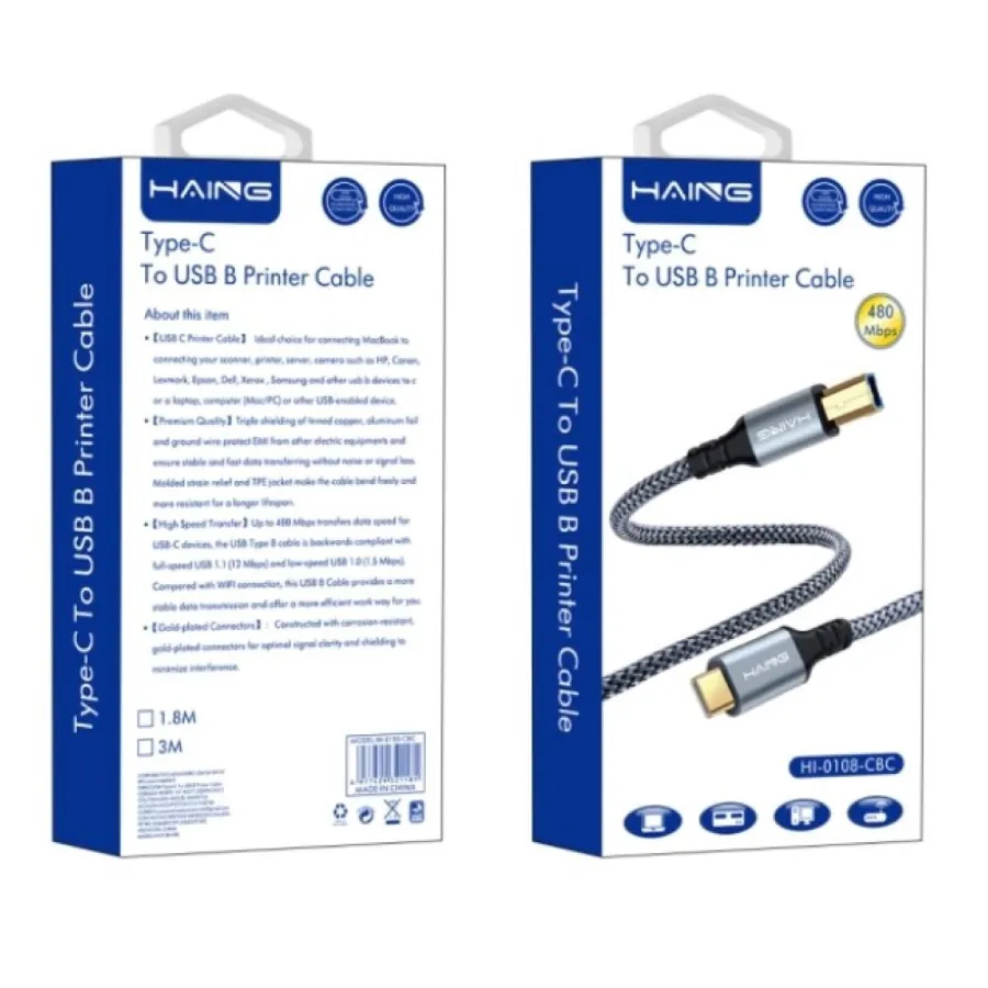Stable & Clear Printing: Constructed with anti-oxidation, nickel-plated plugs and triple shielding from EMI due to other electrical equipment, this USB C printer cable provides better transmission performance and protection from EMI/RFI noise. Enjoy clear and convenient printing without data loss while printing.