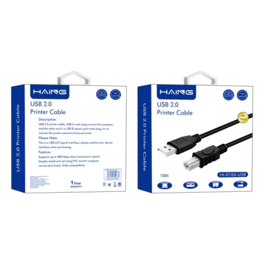 Anti-interference๏ผPrinter 2.0 Cable No need to install drivers,Avoid unrecognizable Printer error and other issues.