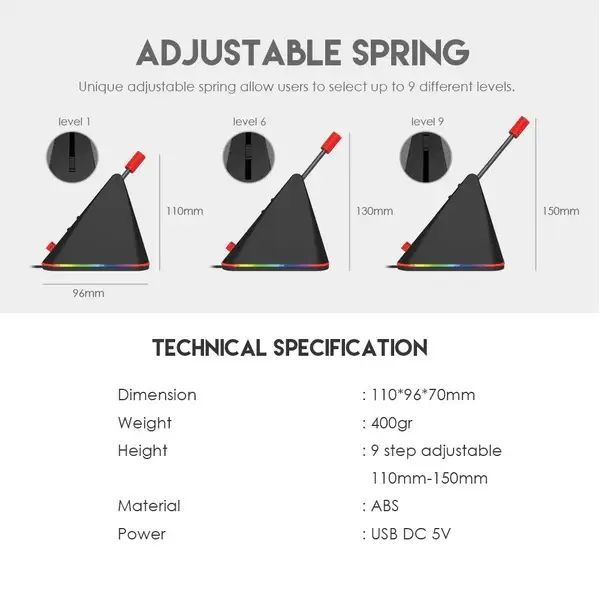Height : 9 step adjustable 110mm – 150mm