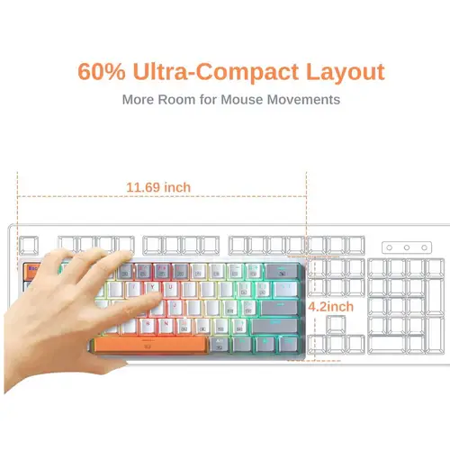 60% Keyboard Mechanical, Mini Wired Gaming Keyboard Compact 60 Percent Keyboard, RGB Backlit Hot-Swappable Red Switch Fully Programmable for Windows Laptop PC Mac,K642WGO White-Gray