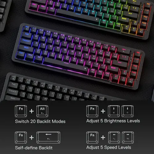 Wired 68 Keys Layout - Redragon 65% layout K709 in wired mode meets the user's need for separate arrow keys and extra function keys. 68 keys ultra-compact and lightweight slim design frees up precious desk space for less clutter.
