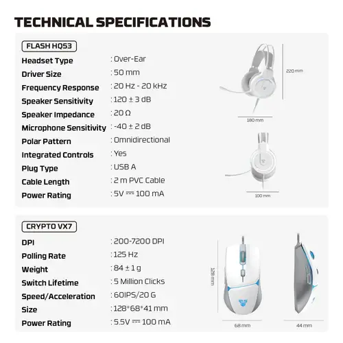 Gaming Headset & Headset Stand : Over-ear gaming headset has a lightweight design (320g) that makes you feel more comfortable wearing it for a long time. Features RGB color-changing light, powerful 50mm driver, 200cm 3.5mm audio cable and USB-powered lighting, noise-canceling microphone. And the headset stand is also a must-have to make your setup organized and decent.