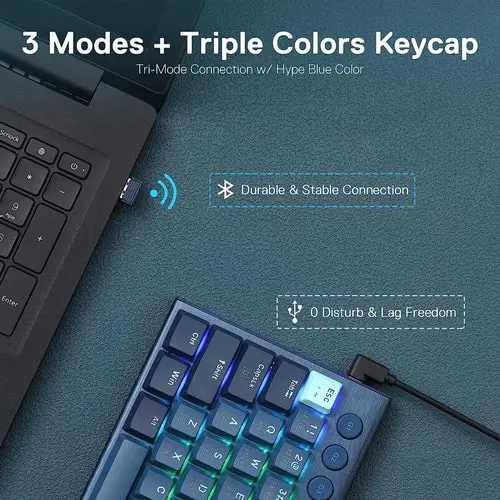 3-Mode Connection - Here comes Redragon innovative 1st-Gen 3-mode connection technology, USB-C wired, BT 3.0/5.0 & 2.4Ghz wireless modes which make the user experience upgraded to another level in all fields.