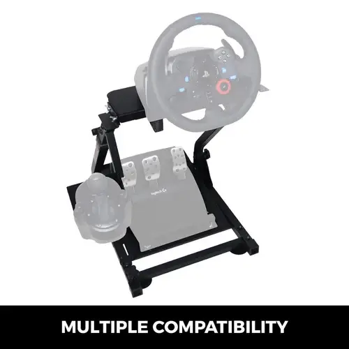 High Compatibility: As a universally designed wheel stand, this bracket fits all racing wheels, pedals, and shifters. It is compatible with Logitech G25, G27, G29, G920, Thrustmaster T300RS, TX F458, T500RS, T3PA-PRO (F1/GT), Fanatec Clubsport, and CSR pedals. Note: wheel, shifter, and pedals NOT included.