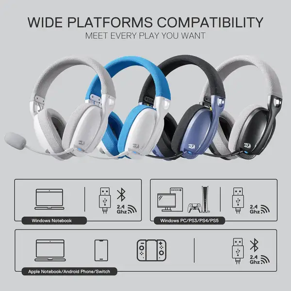 Wireless Freedom Unleashed - Experience Gaming Freedom with Redragon's RGB 3-Mode wireless gaming headset. Easy to switch from USB-C wired, BT 3.0/5.0 to 2.4Ghz wireless modes. Cut the Cord, Move with Ease, and Elevate Your Gaming Experience to New Heights.