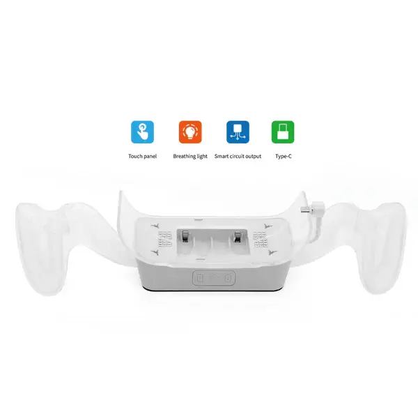 The surface of the product and the handle bases on both sides are fully transparent and high-gloss design, so that the orange and blue two-color lights built into the product can illuminate the product surface with an ambient lighting effect while charging.
