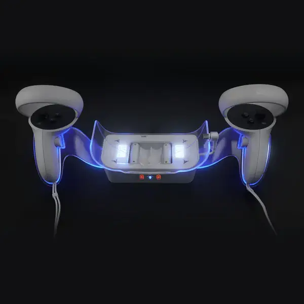 his product is a VR headset and VR handle battery charging base designed for Oculus VR glasses.