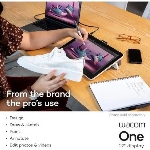 Wacom One 12 Drawing Tablet with Screen (2024), Full-Laminated 11.6” HD Screen Graphics Monitor, Works with Mac, PC & Chromebook for Drawing, Photo/Video Editing, Design, & Education.