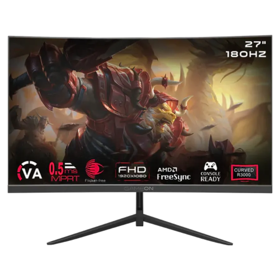 Key Features:27-Inch FHD Display1920x1080 Resolution180Hz Refresh RateVA Panel, 3000R Curve0.5ms MPRT ResponseVRR Enabled100% sRGB CoverageHDMI 2.1 + VGABuilt-In 2W SpeakersFlicker-Free, DC DimmingVESA Mount CompatibleTilt Angle AdjustableSupports AMD FreeSync16.7M Display ColorsLow Power ConsumptionCrisp Full HD Clarity!Experience stunning 27-inch Full HD visuals (1920×1080), perfect for gaming and entertainment.Ultra-Fast Refresh Rates!Enjoy 180Hz via DP and 144Hz via HDMI for buttery-smooth gameplay and immersive action.Immersive Curved Display!Feel the depth with the VA Curved Panel and 3000R curvature for a natural viewing experience.Lightning-Fast Response!Eliminate motion blur with 0.5ms MPRT response time for sharp visuals in fast-paced action.Smooth Gaming, Zero Stutter!Experience seamless gameplay with VRR and AMD FreeSync, ensuring tear-free visuals and smooth performance for an immersive gaming adventure.Versatile Connectivity Options!Features HDMI 2.1, DP 1.4, USB, and audio out plus built-in speakers for convenience.Intuitive Monitor Controls!Easily navigate with a five-button control menu, including power, menu, and settings.Vibrant Colors with 100% sRGB Coverage